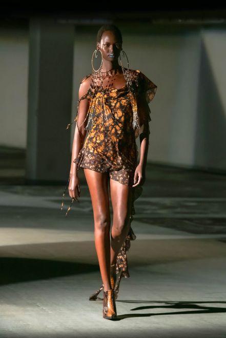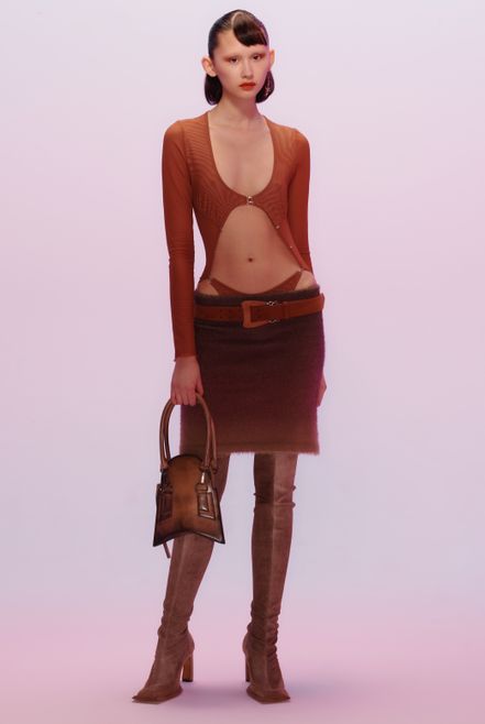 KNWLS is a South London based brand launched in 2017 by Charlotte Knowles and Alexandre Arsenault, shortly after they graduated from Central Saint Martins. The brand strives to embody a disruptive vision of femininity, dangerous yet sensual. Their combined interests inform a unified perspective on an empowered wardrobe for a new digital zeitgeist. Best known for experimental body-con designs that accentuate the silhouette in unexpected ways, abrasive textures and print, KNWLS proposes an alternative approach to sensuality, exploring the strength of a future femininity.