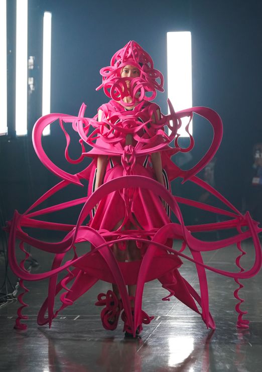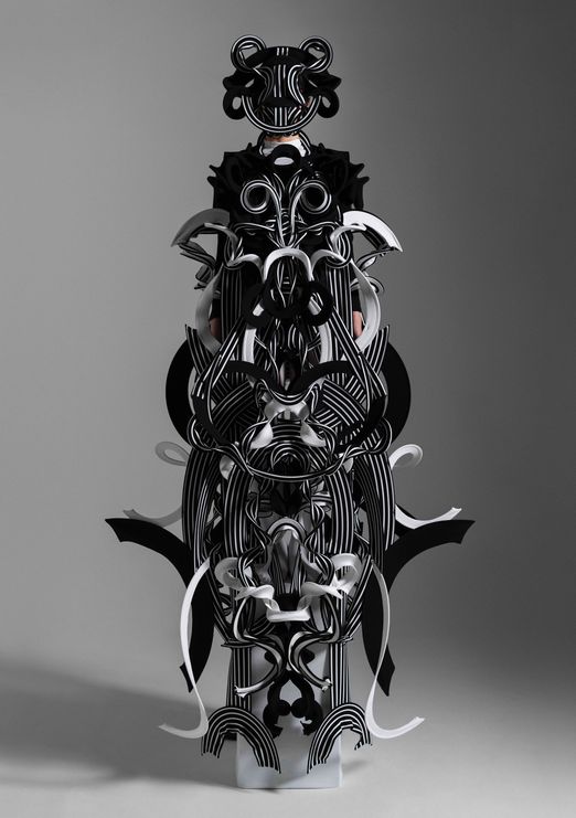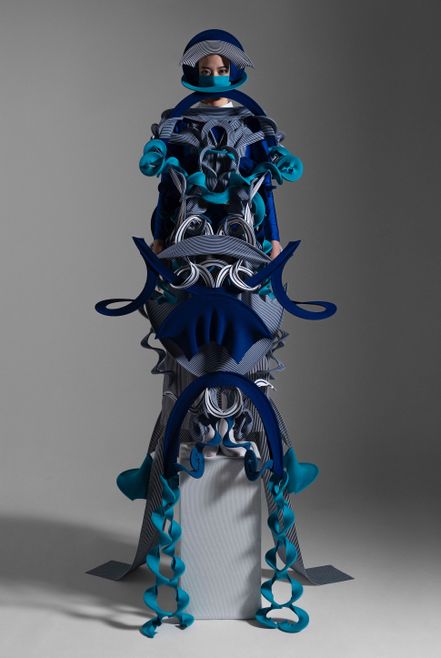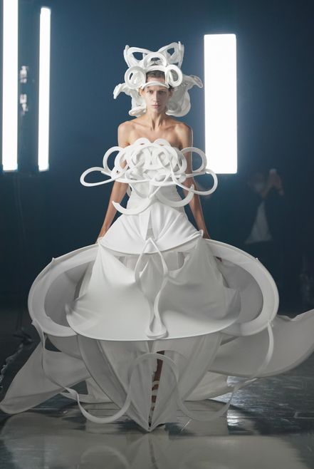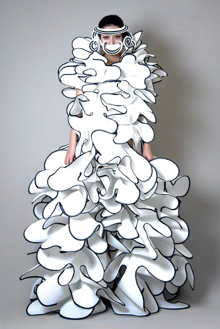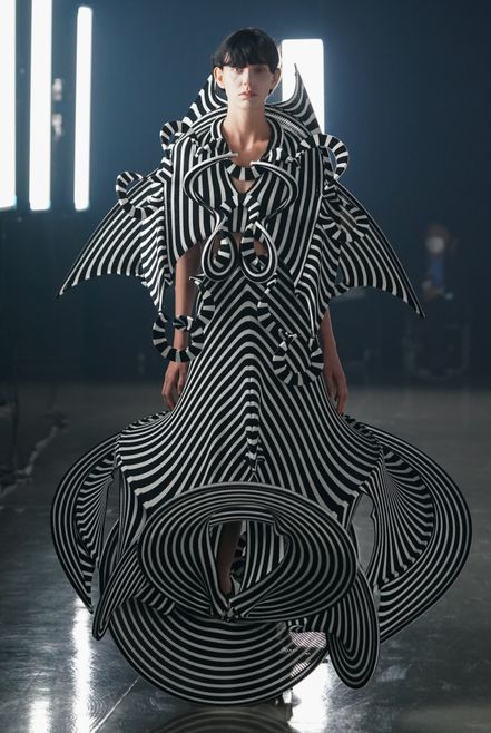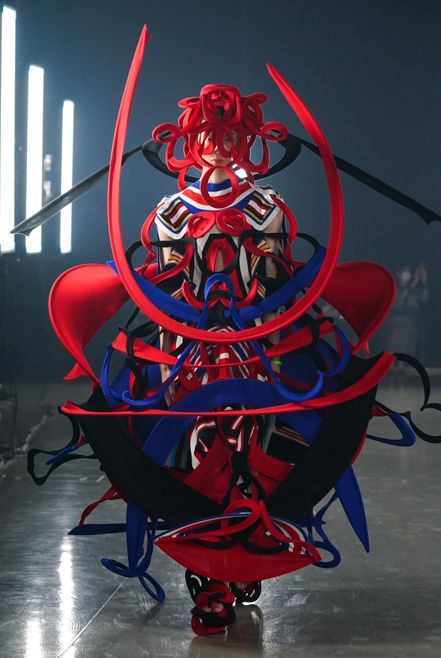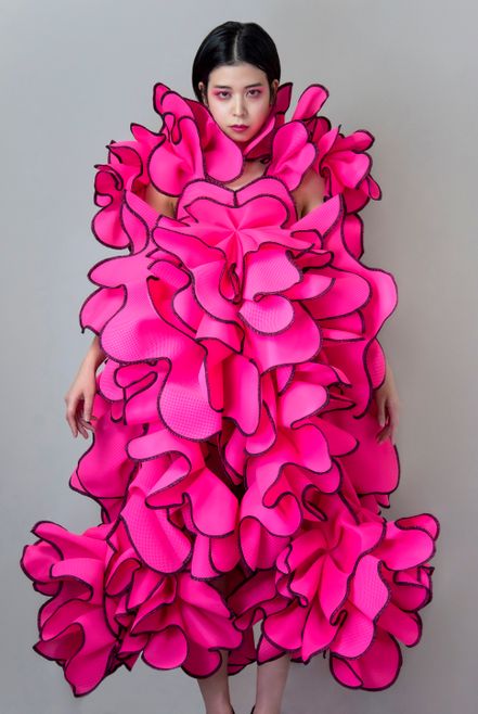The theme of Ryunosuke's work is "harmony between people and nature" and "prayer". Born and raised in Hiroshima, the city where the atomic bomb was dropped, Ryunosuke has been praying for peace since he was a child. He is interested in the relationship between people and prayer in Shintoism. Ryunosuke does not draw his designs, but starts from the beginning, working with the fabric and his hands to create the dress. This process can also be called an act of "prayer”. He launched his RYUNOSUKEOKAZAKI label in 2018 and graduated from with a Design MA from the Tokyo University of the Arts in 2021. The brand has received the following accodales: September 202: big design award 2021, Finalist January 202: first prize in the Graduation Works Exhibitions 2021, Design MA at Tokyo University of the Arts.