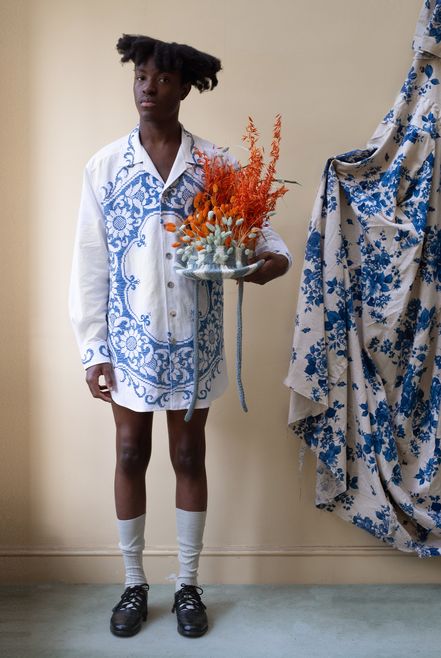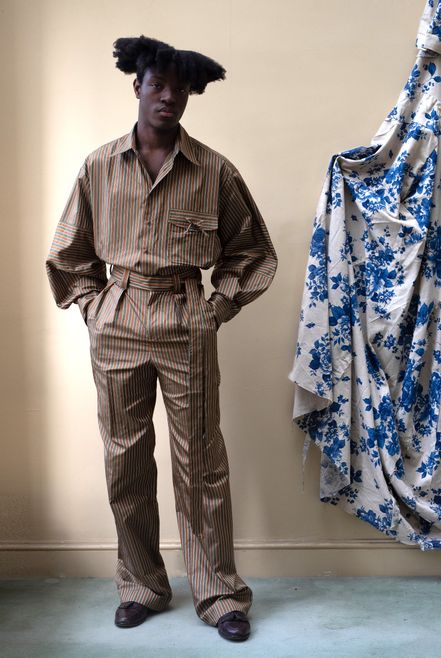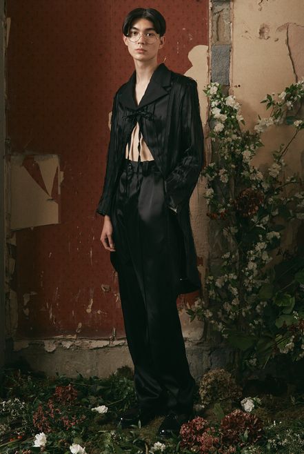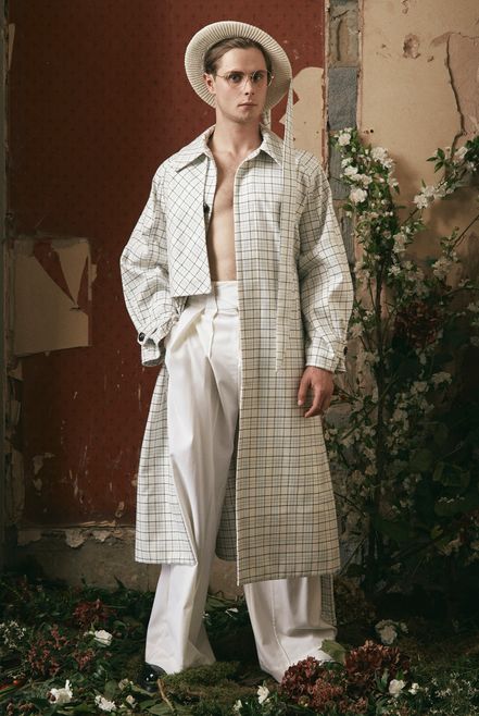 Daley, a working-class boy from Liverpool, reinterprets the realm of British elitism via the institutions of the British upper classes and questions the structural nature of this British heritage through a ‘homosocial’ lens. During his studies, Daley quickly became enraptured with the world of regatta races, flowery traditionalism and the inherently feminine aspects in this hyper-masculine culture. Honing his craft in the menswear teams of Alexander McQueen and Tom Ford, Daley had a range of experiences that prepared him for crafting his own brand identity. Daley garnered the attention of Vogue with his use of donated McQueen fabrics in his graduate collection. Daley has continued to work in an ecological manner by using donated fabrics in his collections and one-of-a-kind pieces. S.S.DALEY’s LFW debut, in collaboration with the National Youth Theatre, was a call to arms for the importance of theatre and a critical highlight of the season.